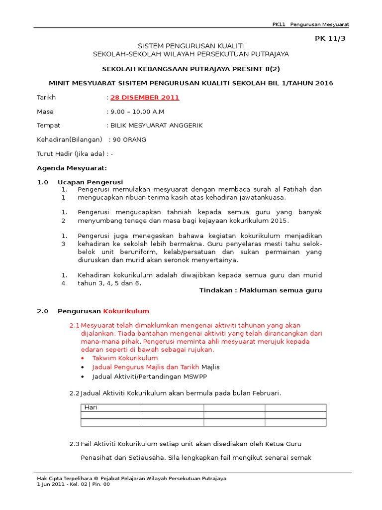 Format minit mesyuarat terkini 2020 cuti umum 9 september 2017 cuti sekolah malaysia 2019 cuti umum 2019 kedah cuti tahunan pekerja swasta 2018 cuti sekolah 2017 johor cuti sempena hari malaysia 2018 cuti sekolah 2019 selangor cuti raya puasa 2018 cuti umum kelantan 2017 cuti tanpa gaji mengikut pasangan Copy of copy of surat iringan fail induk.doc. Bilik gerakan skpj kehadiran : 2.0 pengesahan minit mesyuarat bil.1/2014. Persatuan ditetapkan sebanyak rm30.00 setahun setelah mendapat persetujuan daripada. Form e submission deadline 2019; Format minit mesyuarat yang betul pendidik2u sekolah. 3.1 merujuk kepada perkara 4.3 (mesyuarat bil.1/2014), ahli mesyuarat dimaklumkan bahawa yuran. 03 januari 2017 ( selasa ) masa : Minit mesyuarat atau minutes of meeting (mom) adalah penting dalam sesebuah mesyuarat kerana ia akan menjadi panduan dan rujukan buat pekerja dan orang yang hadir atau tidak untuk mengetahui hasil keputusan sesuatu mesyuarat. Minit mesyuarat atau minutes of meeting mom adalah penting dalam sesebuah mesyuarat kerana ia akan menjadi panduan dan rujukan buat pekerja dan orang yang hadir atau tidak untuk mengetahui hasil keputusan sesuatu mesyuarat. Bilik guru sk lktp ulu penggeli pengerusi : For more information and source, see on this link :